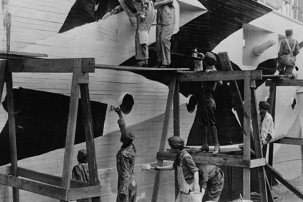 In the photo, a group of women in uniform are applying dazzle camouflage to a grounded battleship at a recruiting station. As a method of disguise, “dazzle camo” or “razzle dazzle,” as it was also called (incidentally also referenced in Karen Kraven’s recent Montreal exhibition), is unusual in that it didn’t aim to hide targets, but to confuse enemy gunners, though its effectiveness was doubtful. Dazzle camo may actually have been of greater value to artists than to marines – Picasso famously claimed that Cubists were its true inventors. For Camoufleurs, two of the gallery walls have been painted with a mural based on the pattern in Ritter’s archival photo. It Its function is partly decorative and partly referential – it dresses up the space while acting as a stand-in for an interesting story that lies outside the artwork itself.