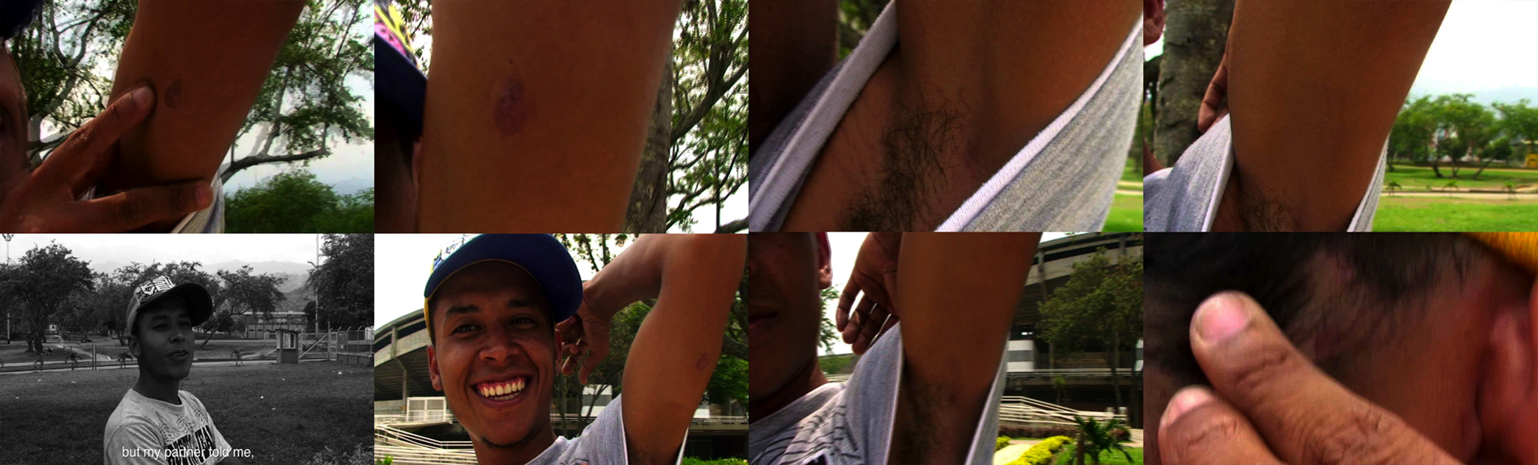 Yes, you can say that MOVING STILL_still life (on view at The Ryerson Image Centre in late 2015) includes sampling and remixing and appropriation indirectly. But it’s also an experiment; I call it a “collaboratory.” The work is the result of a series of self-representation video workshops, mostly based on helping the youth to conceptualize ideas into visual images and to produce an artistic work of their own. The workshops took place in different neighborhoods in Cali, but mostly in Siloe and the marginalized, culturally rich area made up of different neighborhoods. After working there for many years I decided to produce a work in 2010. With MOVING STILL_still life I wanted to recreate the simultaneous multiple perspectives and the fragmented flow of events and visual information, which is the way I feel when I am in that place. This is why I designed it as an installation of eight monitors. I have been showing one single screen because it is difficult to show installations. MOVING STILL_still life investigates how the environment affects the emotions and behavior of individuals, and how these individuals can perceive, think, and alter the coordinates of their world in order to negotiate with other youth living in the area but who belong to a different group. It captures both their conscious and unconscious responses to cultural, economic, and political constraints and inequities.