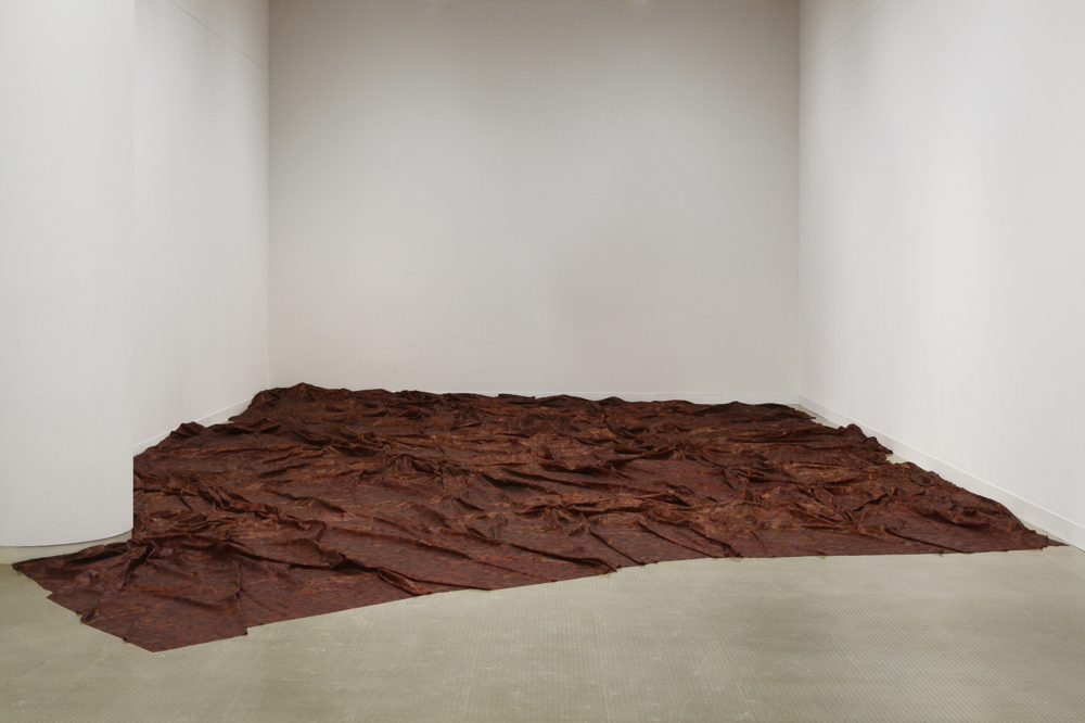 Standing over the last work in the exhibition, A Flor de Piel (2014), an impressive carpet of fresh rose petals sutured together, I am asked to witness. By some alchemy, the petals remain supple ovals, delicately held together to blanket the whole space. It’s the farthest thing from rugged industrial felt, but nonetheless warm and full of life. Dedicated to a Colombian nurse who was tortured to death, the work acts as a full stop, concluding this exhibition’s long, lyrically-meandering sentence with many commas to indicate the necessary moments for pause. A tribute to a particular individual, A Flor de Piel beckons all who stand before it to take a stand as one among many, like the thousands of stitches that suture the lips of so many wounds.