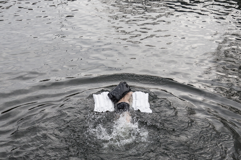 Endurance and durational performances have become a cliché. I’ve done my share, so I’m not immune, but now I’m a bit suspicious of the merits. Labor legitimizes the object. Usually a well-crafted pencil drawing with many visible strokes will be valued more than a simple scribble (clearly this is not always true). In this way I think performance artists legitimize their craft [through] thinking, “Well if I do this thing straight for eight hours or nonstop for a week it will have value.” In my practice I’m more interested in doing “fake” endurance. When I swam in the freezing canal to get a coffee, that was clearly an absurd gesture. It was more interesting to me because of how quickly it ended, than for the fact that the water was cold and it was difficult to do.