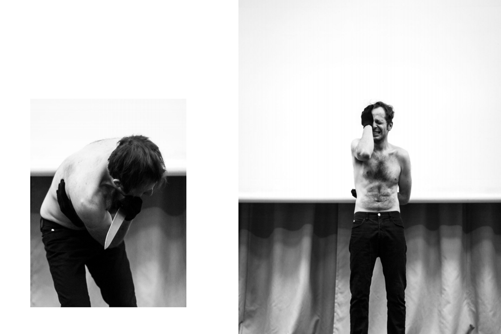 Last year I did a piece called Dance Like Everybody’s Watching, during which I danced as though in a trance and played with a kitchen knife. I didn’t cut myself for many reasons, but mainly because that was not the point. I’m more interested in having the audience skirt the line of real danger with me. I hope they expect pain and suffering and when it doesn’t happen I hope they question their desire of seeing someone get hurt.