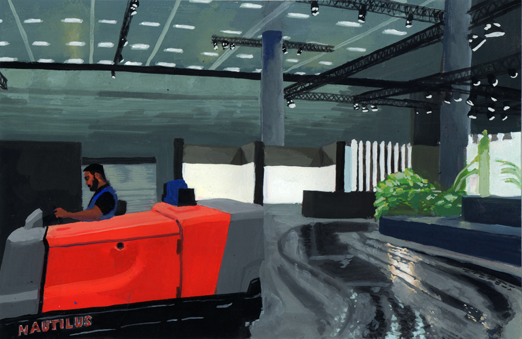 As soon as Art Basel opens – first to the VIP, then to the general public – all of the workers are disappeared. This is quite literal: in the badge system of access that Basel works by, worker badges cease to have any kind of validity once showtime starts. The fair they built, the works they installed, the floors they cleaned, are not for them.