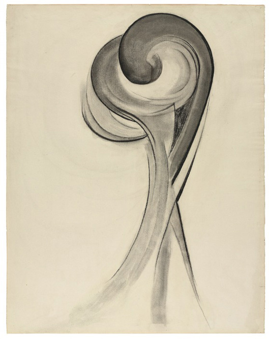 Born the second of seven children, Georgia Totto O’Keeffe grew up on a farm near Sun Prairie, Wisconsin, and studied at the Art Institute of Chicago and the Art Students League of New York. Her style and thinking shifted dramatically in 1912 when she studied the revolutionary ideas of Arthur Wesley Dow, whose focus on design and composition opened up new avenues for her art. This led to a series of abstract charcoal drawings in 1915 that represented a major break with tradition and made O’Keeffe one of the very first American artists to explore abstraction, even if her work was rooted in observed landscape. These drawings were shown to art dealer, photographer and gallerist Alfred Stieglitz, who was the first to exhibit her work in 1916. (He later became her husband.)