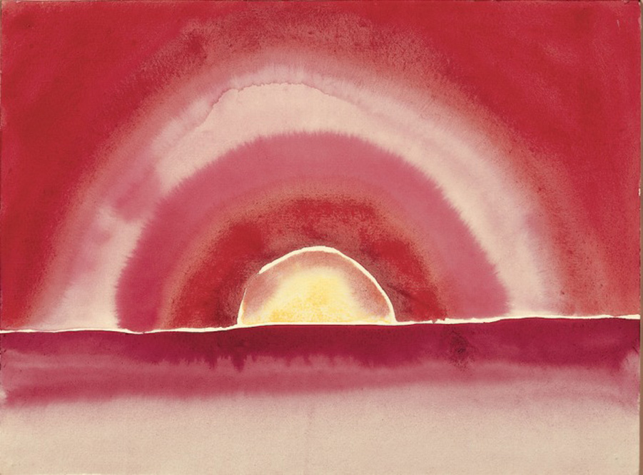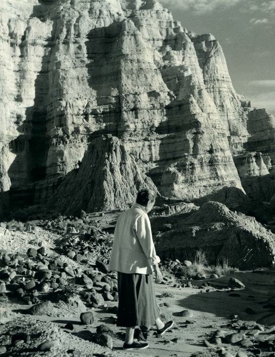Over the next twenty years she spent part of most years living and working in New Mexico (first at Ghost Ranch and then Abiquiu), making it her permanent home in 1949, three years after Stieglitz’s death. In the 1950s O’Keeffe started to travel across the globe, and would subsequently make paintings that evoked some of the many places she visited, including parts of the Middle East, Asia, and Latin America. During her later years she would continue introducing new subjects, most notably her series of cloud paintings. A degenerative eye condition slowed down her activity, and she completed her last oil painting without the help of a studio assistant in 1972. She died in Santa Fe on 6 March 1986, aged 98.