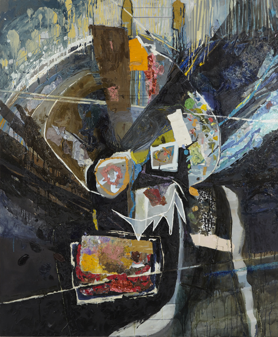 Whatever specificity of place can be found in Susanna Heller’s paintings at Olga Korper Gallery shimmers with Wallace Stevens’s line, “Description is revelation. It is not / The thing described.” Working on an all-encompassing scale, Heller’s new suite of paintings “describe” landscapes that toggle between the exterior and the interior, and jostle with the movement of their lived experience. Known for her process, in which the Brooklyn-based Heller sketches on foot (often while walking towards Manhattan – but Toronto appears here, too), the resultant images have the quality of a handheld camera, if it could zoom inward as much as out, and factor in emotional turbulence just as the wind shakes the lens.