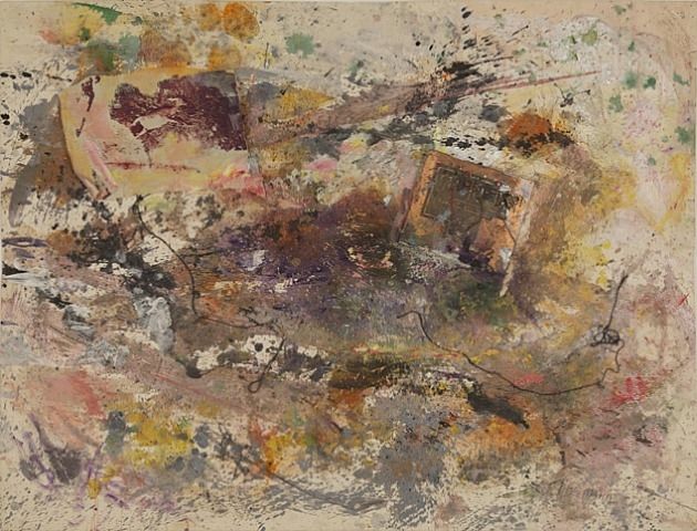 Schneemann expressed a kindred lament when she wrote in 1966 of our “icy psychic technological ‘cool’,” and again when she noted the following year that our inventions curtail our perception, that we are blocked off from the earth’s “quivering and shining” by the “mechanical labyrinths” of the city. When it comes to mechanical objects, she wants the guts visible, enjoying them not for their ability to substitute human action, but for the illicit, disavowed fact of their own texture. In her Dust Series (1980s), circuit boards are laid bare and pinned to the canvas, caught up in a field of dense activity and earthy color, their presence competing with dynamic globs of paint, sprinkles of glitter, pasted feathers.
