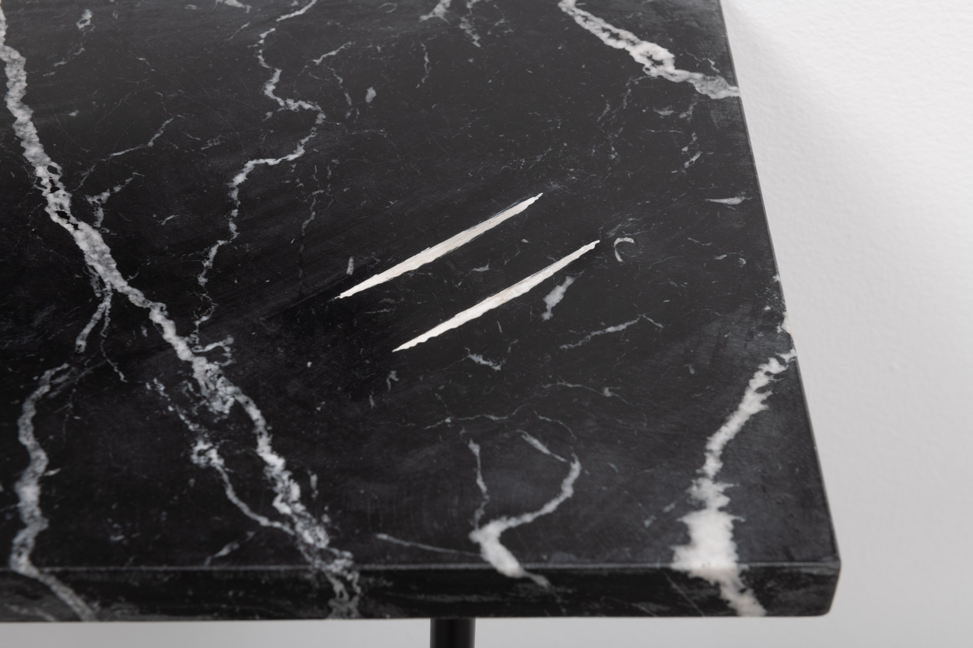 Bool seems to be asking this, too, however knowingly. But she elevates and complicates her narrative treatment of these received tropes in a final suite of works that shimmer with absurdity while hanging heavy with their hauntings. Women in their Apartment features a collage of photography and drawing, stationing Kim Kardashian’s most memorable asset (rendered repeatedly in a Cubist, or Moorish, shorthand) within a tiled bathroom from Le Corbusier’s iconic Villa Savoye. Beneath this “women bathing” is a sculptural touch ringing with Bool’s trademark legerdemain: a thin, marble-veined, and spindly-legged countertop that holds two conspicuous powdery lines. Sugar Veins is a nod to a trompe-l’oeil moment in Kardashian’s Instagram history, which erupted into a conspiracy theory and required her correction (“it’s just a marble top! C’mon guys, I don’t play like that,” she assured, while wreathing herself in imaginary emoji-flowers).