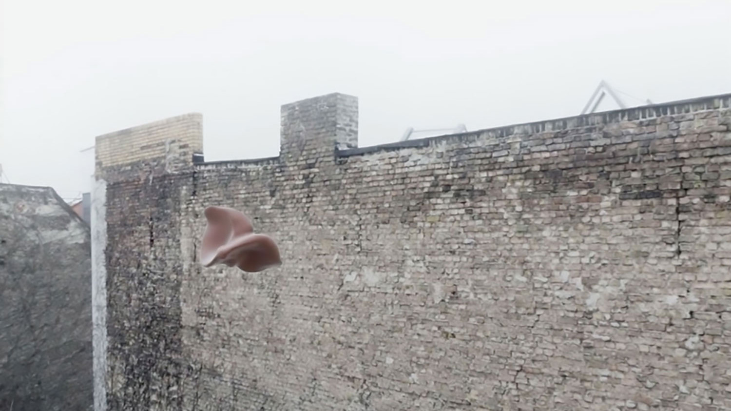 Without any scaffolding explanation, the overriding impression given by the dreamlike images is of a futuristic community engaged in a telepathic intimacy transcending language. The mysterious blob and prosthetic objects suggest a kind of organic technology that has enabled new forms of perception and communication; the way these tokens are cradled and stroked implies an evolved form of the relationship people already have with their smartphones. However, nothing in Favreau’s video explicitly suggests high technology: there are no screens, nothing metal or plastic, nor even furniture or hints of personal possession aside from minimal clothing. The dominant textures of the piece – skin, brick, wood – invoke the past as much as the future. Will Deliquesce conjures a life of cerebral eroticism, in which technology seamlessly integrates with primal human needs.