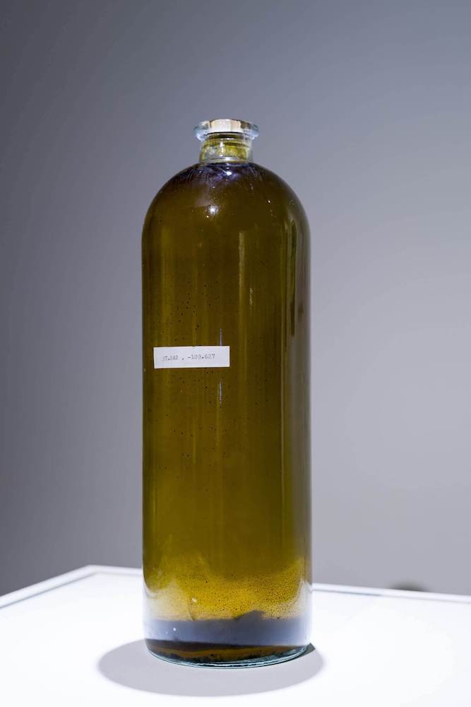 Early in his practice, Scott and his roommates ran a venue out of his home called Fort Bicycle. There, in the midst of sweaty bodies gathered in the euphoria of loud music, he helped form a community. This is also when he began making ambitious installations like Together Forever (2013), where he meticulously built a small rowboat from scratch, and rested it atop two beautifully-finished teak sawhorses, which sailed on a sea of felt emergency blankets. This precariousness of survival in the midst of the permanent emergency of colonial and capitalistic violence became the basis for other works like the aptly-named Disaster (2014), a constellation of a handmade book of the same name, a raven feather and a two-stroke engine suspended inside a utopian dome. Perhaps most poignant was the series of public flags, From Pink to Blood Red (2016) collectively spelling out a poem he had written: “This valley is filling with the blood of ghosts and we are as close to drowning in blankets as we have ever been.” The flags, made of canvas appliqué-d with letters from those same wool emergency blankets, slowly disintegrate in the desert wind.