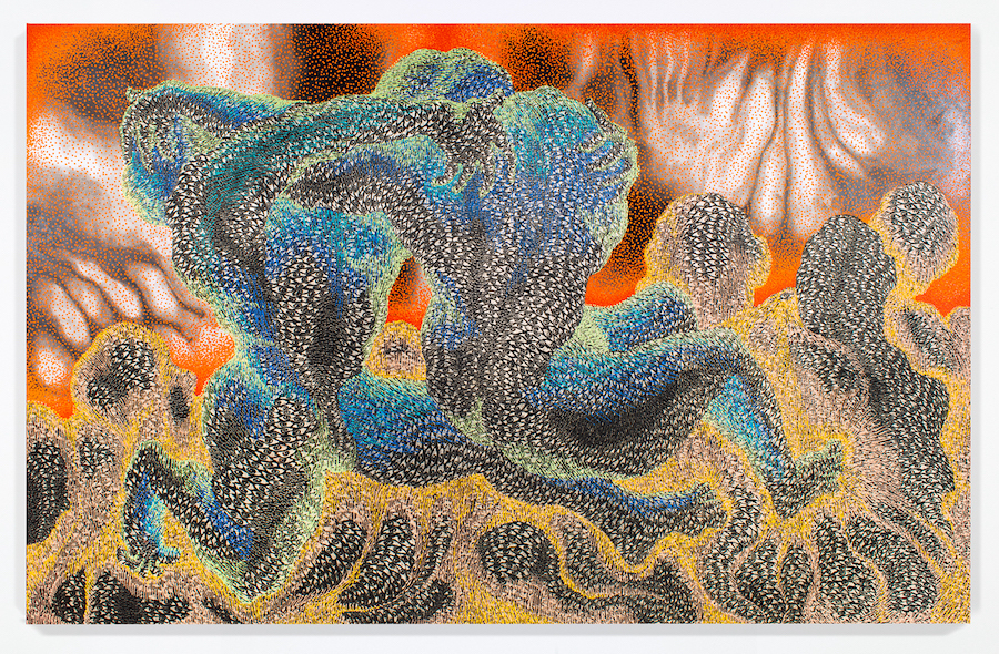 William: I think the part of the question I really sort of resonate with is this space in between that you talk about, Jason, which for me has always been a process of trying to make images of things that I haven’t seen before. Things that I’ve heard about, things that I’ve read, things that I might sort of loosely remember, things that have been inherited certainly from my parents. And I think, as someone who immigrated to this country and is sort of trying to access those lost memories, some of which are personal and individual, and some of which are cultural and collective, I’m sort of constantly trying to stitch it together into a particular kind of presence in the moment. A presence that gets rebuilt onto and literally inscribed into the painting’s surface.