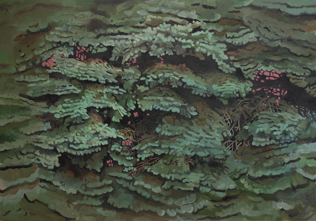 Trees are perfect subjects for painting. Every individual tree is so intrinsically interesting and yet boring, like how any particular moment of life is both dull and surreal, phantasmagorical and ordinary. If you want the beauty of the tree, you must accept its lack of specialness. If you reject the tree for its obviousness, you lose a ready source of wonder. But all this negotiating takes place on the human side; on the tree side, there is only unmitigated presence.