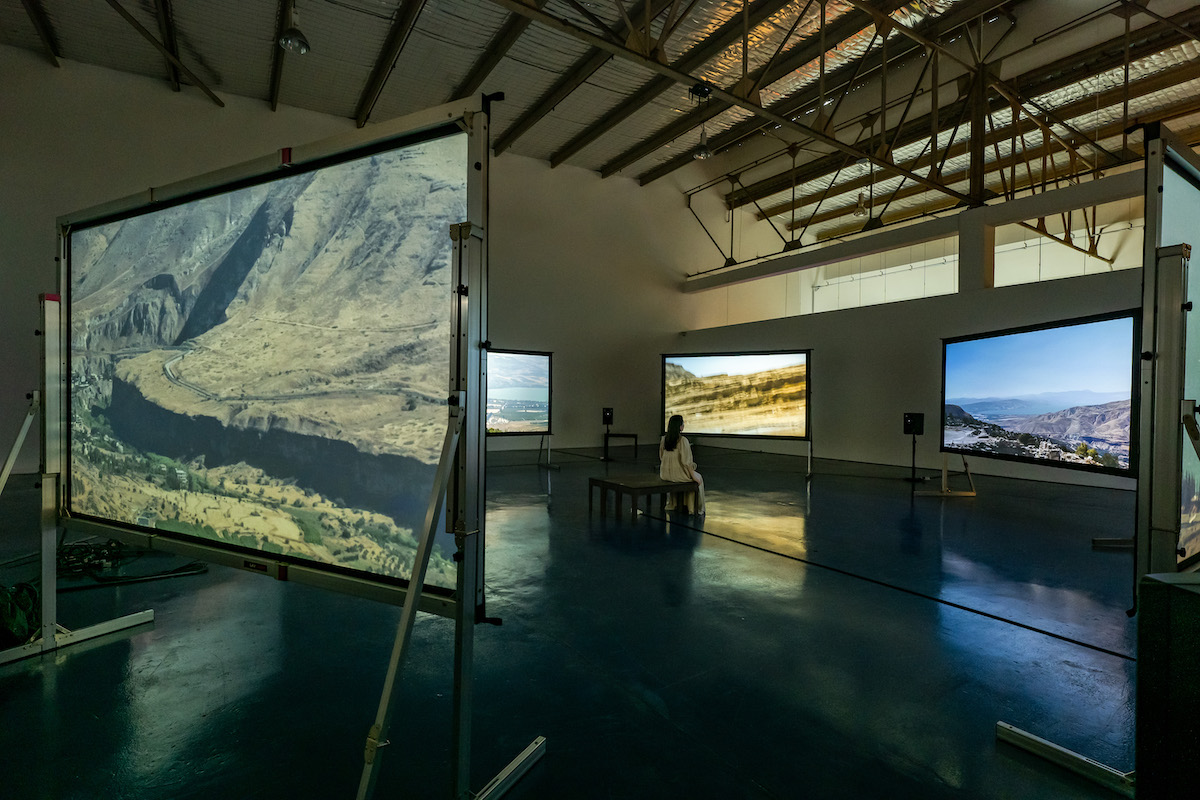 Given the ample real estate afforded some artists, it was odd that sections of the SAM show felt too spacious, almost empty, as though work had gone missing. (One of the less kind reviews I heard about the Biennale came from a dealer in town for the ART SG art fair, who wondered why four curators were required to organize such a modestly sized affair.) A positive way to put it: This was an endeavor rigorously opposed to spectacle, to the grand, unsalable installations that defined the heyday of biennialism in the 1990s––what the late critic Peter Schjeldahl called festivalism. There was very little razzle-dazzle, and some of the few potent visuals came in one of the most distressing works: a multiscreen video installation that examined the steady erosion of the Dead Sea, by Singaporean Ong Kian Peng.