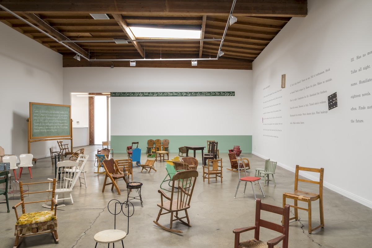 “I see her influence kind of like a ghost. People don’t quite know who the ghost is, but they’re just in the air somehow,” the artist Patrick Jackson, who was introduced to Smith’s work through Watson, his partner, wrote to me. He stressed how much the kinds of installations Smith made—which often included wall painting, and everything from sand on the gallery floor to a host of readymade objects like hay bales, flowerpots, shopping carts, trophies, and brooms—have become common in LA (and one could argue, internationally). “She was the artist that was influencing a lot of people, maybe even including myself, without [me] even knowing it.” John Tain, a curator who formerly worked at the Getty, told me that “Smith’s work was always just there as part of the LA culture-scape, whether it was as part of permanent collection displays at MoCA, or as part of the décor.” He cited Smith’s installation Taste (1997) at the Getty Center’s restaurant, which wryly conflates classical notions of aesthetics with culinary elements on wall-length murals hung with terracotta plates, as well as the terrazzo floor pieces she made for the Los Angeles Convention Center.