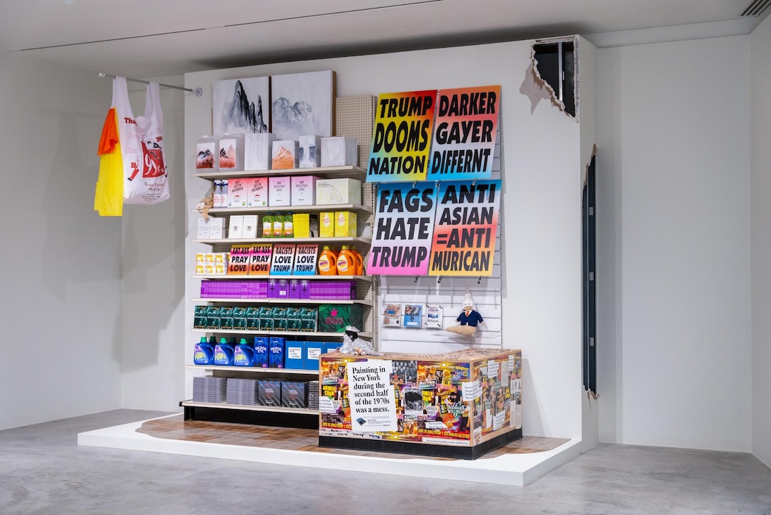 Chan’s earlier works touched me so greatly because I understood them. Viewing them in the early 2000s, I saw myself, the news, the ambient fear, and distrust that cloaked the country reflected back to me. Something was wrong. This is what I had come to expect from politically engaged artists: they call us to action. And while I don’t believe that most art needs to nor should be instrumentalized to serve another purpose, politically engaged art is also activism, and activism must be legible in order to speak to the people it proposes to speak to and for. Such legibility—as seen in Donald Moffett’s He Kills Me (1987), which became a protest tool for the ACT UP movement, or Vanita Green’s public mural Black Women (1970), defaced by racism on Chicago’s North Side but still standing steadfast—is an act of care.