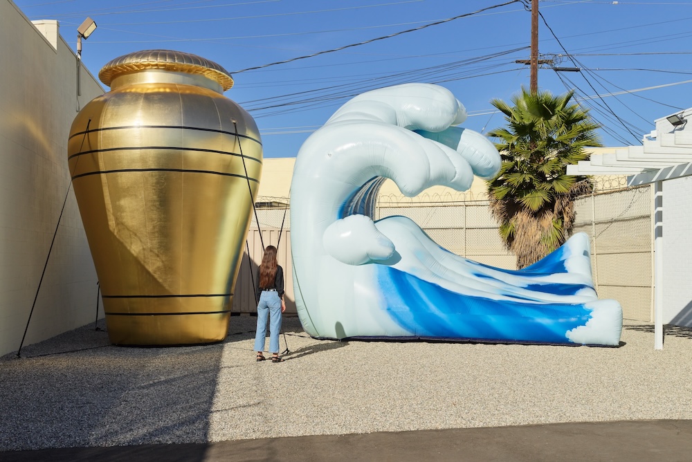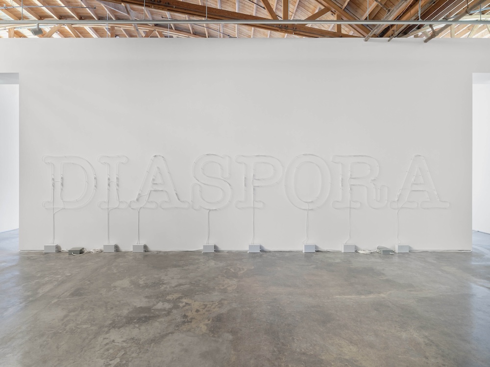 In a review of Schizophrene for the Los Angeles Review of Books, Andrea Quaid writes that Kapil’s book “illuminates how a historical trauma, like a personal one, can have lasting effects that refuse to be contained in a singular time and place.” These effects can transmute into ghosts that rupture a sense of past, present, future. Mehra’s previous show at Night Gallery, The Funny things You do (2021), presented two massive inflatables of the wave and urn emoji, which took up much of the gallery’s outdoor courtyard. Created in the wake of her father’s death, the project struck a quieter chord despite its size, as it meditated on the artist’s own personal encounters with ghostly presences. These spectral energies also animate The End of You, bending time, place, and space through its engagement with the oppressive systems that overdetermine our sense of being and relationality.