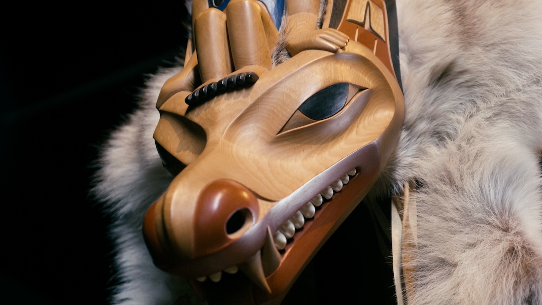 The North Pacific Cannery was central in Bob’s early life; he was only four years old when he moved there. Many of the scenes in A Wolf’s Way take place at the now-closed cannery, where Bob tells the story of his home and his people—not his long-lost ancestors but his immediate family and community, many of whom found work there. When I watched the film, I was curious about the artist’s choice to focus on the cannery. It called to mind something I often think about when reading or writing about Indigenous art and culture: the cannery itself was not an ancient, sacred place; it was, at its peak, a central, modern part of Indigenous lives in coastal British Columbia. Including the cannery in a film about his art was a subtle nod to the fact that Indigenous cultures are not static. We are modern, we exist and evolve, and so do our cultures.