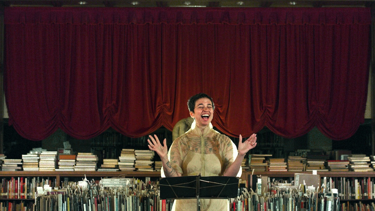 When I viewed the video last year, at Portland’s Oregon Contemporary during the Converge 45 triennial, the screens were spread across three adjacent walls from floor to ceiling. Immersed in the cascading visuals and voices of orators and ocean, I fell into a strange current of swirling, swelling time, my focus cleaved and searching, but never lost. I followed strings of Andrew’s voice, almost ecclesiastic in the singer’s delivery, their words wending alongside Boynton’s forceful, grounding chants. But equally alluring were the universally understood whispers of the ocean, unheard but palpable in multiple scenes. I later recalled the poet Dionne Brand’s line: “I do not believe in time / I do believe in water.” The video felt unmoored from any particular temporal domain as the performers’ recitations coalesced and transmuted into a commanding prayer, or a simmering spell whose exact words we don’t necessarily have to fathom to feel moved.