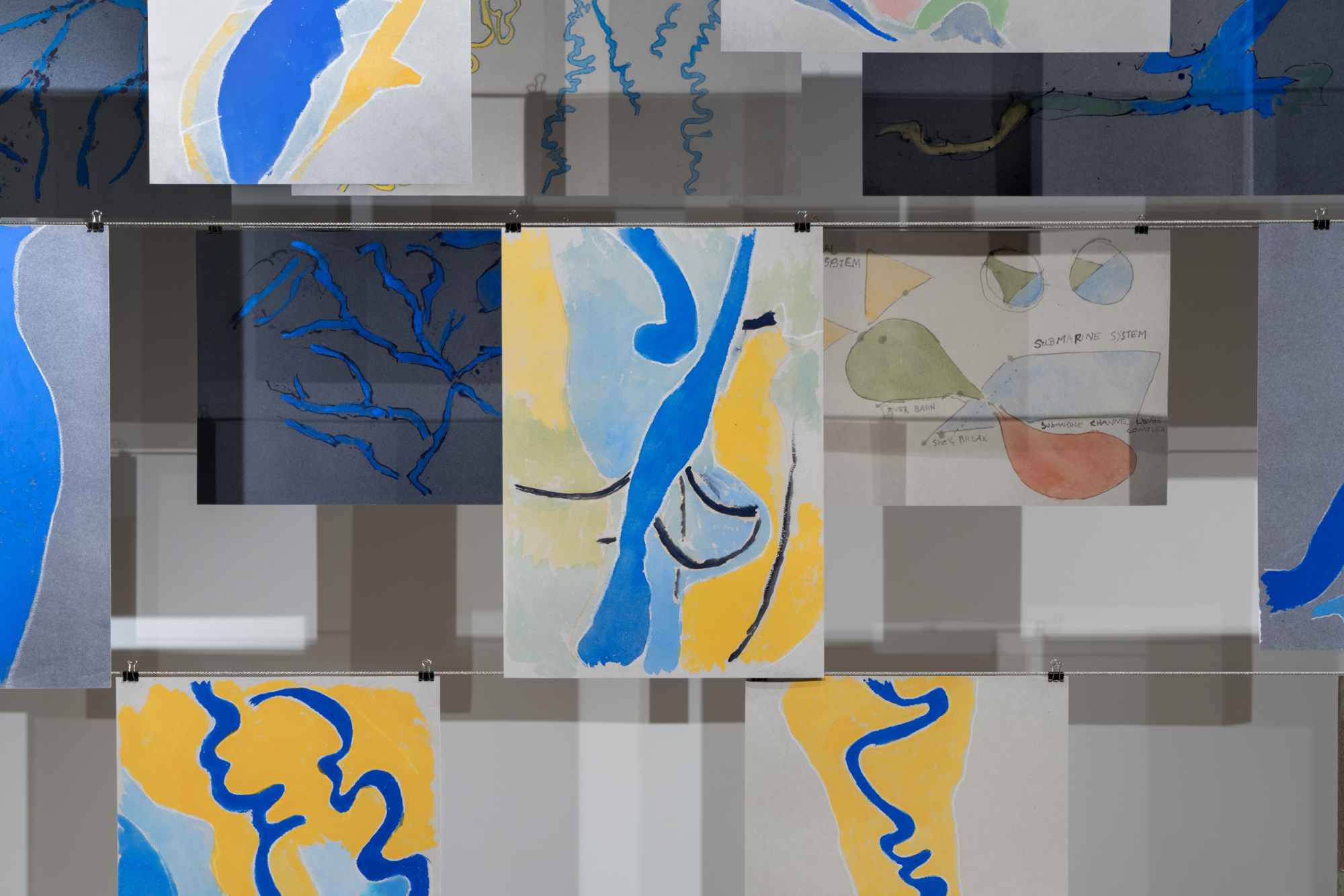 This tight pendant of an exhibition features only the two works mentioned in the title, The Wind (1968), the artist’s first film, and Rivers to the Abyssal Plain (2021), a more recent installation of a film and attendant drawings. Together, they function less as bookends tracing a body of work that famously eschews structural impositions of beginnings and endings than as participants in an intimate conversation, seemingly initiated some time ago that only now has become privy to the rest of us.