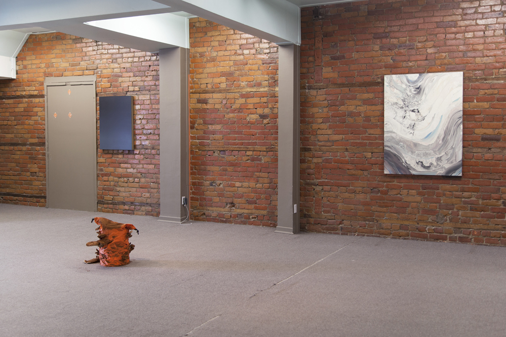 Our Thing and Title II demonstrated that, if the curatorial freedom and flexibility of a project space may not translate easily to the demands of a commercial gallery, it wasn’t for lack of seriousness, ambition, or professionalism among the participants. Épisode Laurier, by contrast, was run with a collegial informality exceeding even that of the invited studio galleries. Despite its well-heeled sponsor and its large size – five galleries and three independent curatorial projects presenting a total of twenty-five artists – it was an almost aggressively unprofessional event. None of the spaces that the organizers had rented for the weekend seemed to have been altered in any way, to the extent that some were still stocked with the furniture, fixtures, and detritus of their previous tenants (a luggage store, in one case). Advance promotion was limited to an Instagram account and a press release that arrived only days before the event commenced. Though billed as a mini-biennial, it had no overall thematic frame or conceit, and none of the participating galleries and curators attempted to impose one on their own selection of works. In this regard, the event felt more like an open studio session. (This also points to a distinction between Vie d’Ange, which is run by two curators, and most other DIY art spaces in Montreal, which are run by artists.) The “micro-fair” description was perhaps more apt, though no prices were posted and, while some sales were made, the overall atmosphere was too casually shabby to feel very commercial. It did, however, feel very “Montreal.”