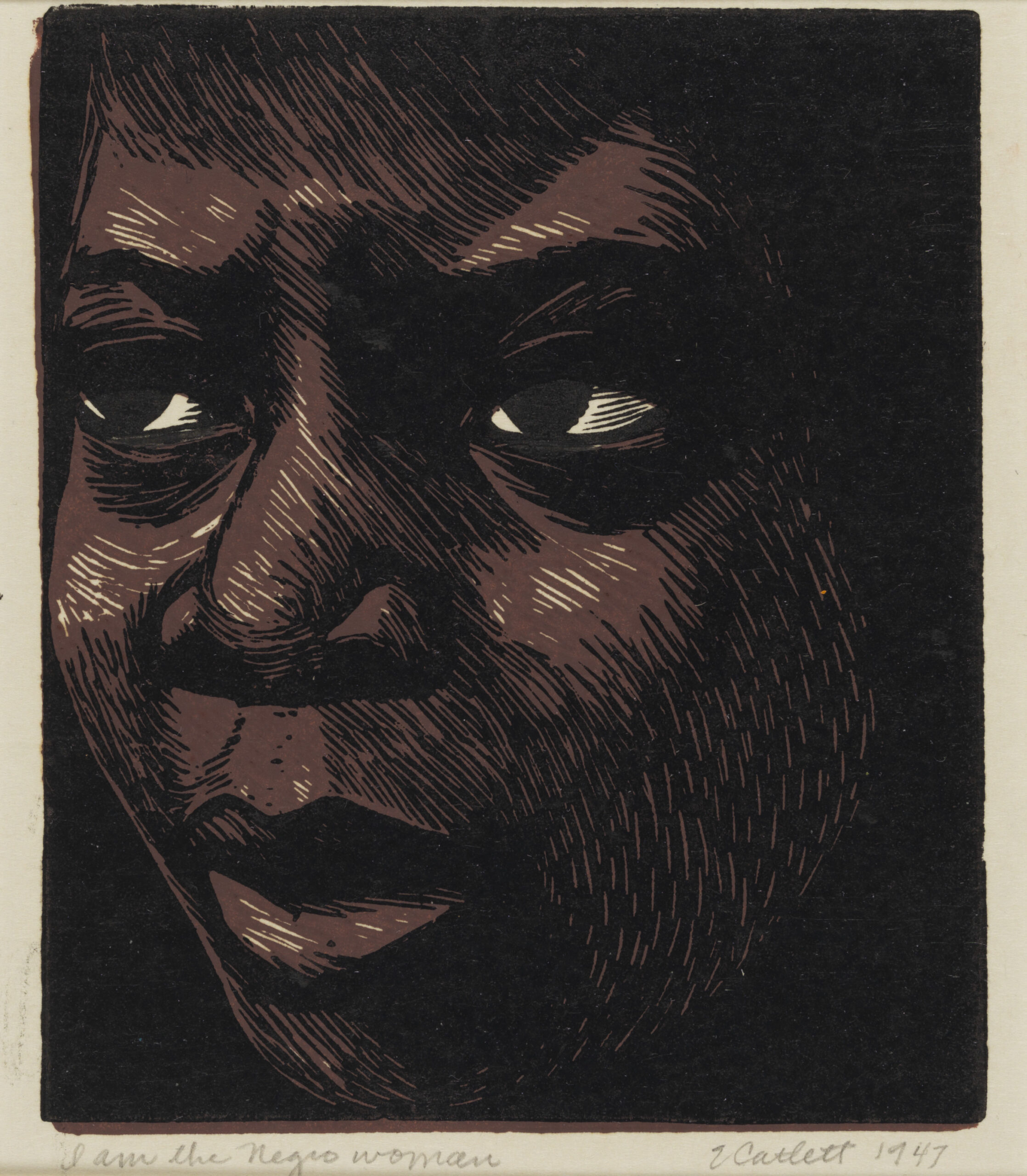 The threat implied by Catlett in her 1970 CONFABA speech may again be holding its sharp edge to the same throat, drawing the attention of today’s authoritarian government. Seemingly speaking to the salient political concerns of our time, the retrospective provides—through the framework of Catlett’s Black revolutionary life—an example of how precarious the privilege of citizenship is, especially viewed against the United States’ chronic throes of fascism. Here is a woman not afraid to leave what does not serve her. A woman who knows what home is and what it ain’t. Catlett’s work is a warning, a blueprint, and a challenge for Black artists whose life work poses a threat to the status quo of an imperial, racist, and patriarchal nation.