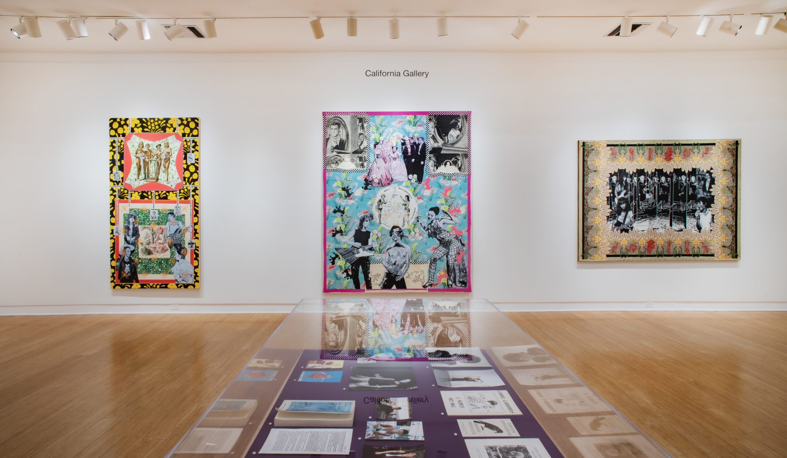For the Heathcliff series, Caroompas also rummaged through her trove of found materials, generously imbuing these paintings with the embroidery and bandannas that one might have worn at a Golden Gate Park love-in decades ago. These flowy materials don’t just give paintings like Queen of the Countryside (1997) a multidimensional textural heft, though. By situating these slivers of embroidery alongside collaged cutouts of punk-rock icons Excene Cervenka and John Doe (of the Los Angeles punk band X), pin-up images of ’40s beauty queens, and an image of Wuthering Heights’s own Catherine Earnshaw, Caroompas calls attention to these emblems of domesticity typically derided as “women’s work.” In her art, Caroompas makes a point to elevate this traditional trapping of domesticity, demanding instead that it be seen as a critical addition to the pantheon of fine art.