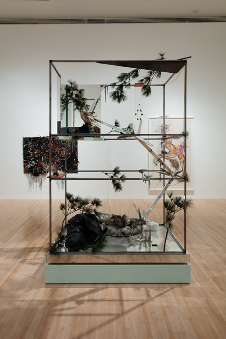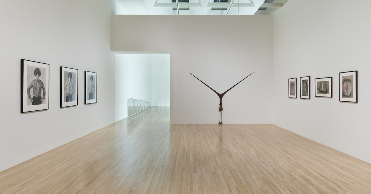 The second half of the show, filled primarily with post-1980s work, is not as consistently incisive as the first. Maybe it’s harder to make unexpected, convincing pairings with work that’s not so tightly tied to histories we already know. Or perhaps Molesworth has a less-developed relationship with some of these newer objects, and so there’s less discernible mastery in their arrangement. The first room in this second half manages to communicate a “greatest hits” feeling, despite including artists like Manny Farber and Sam Durant (not well-known enough to have “greatest hits”). Another room, with seductive work by Elliot Hundley and Wangetchi Mutu, feels surprisingly matchy-matchy, like a designated space for the queerly decorative. Yet some rooms still have that virtuosity that grabs at the gut, then climbs toward the head.