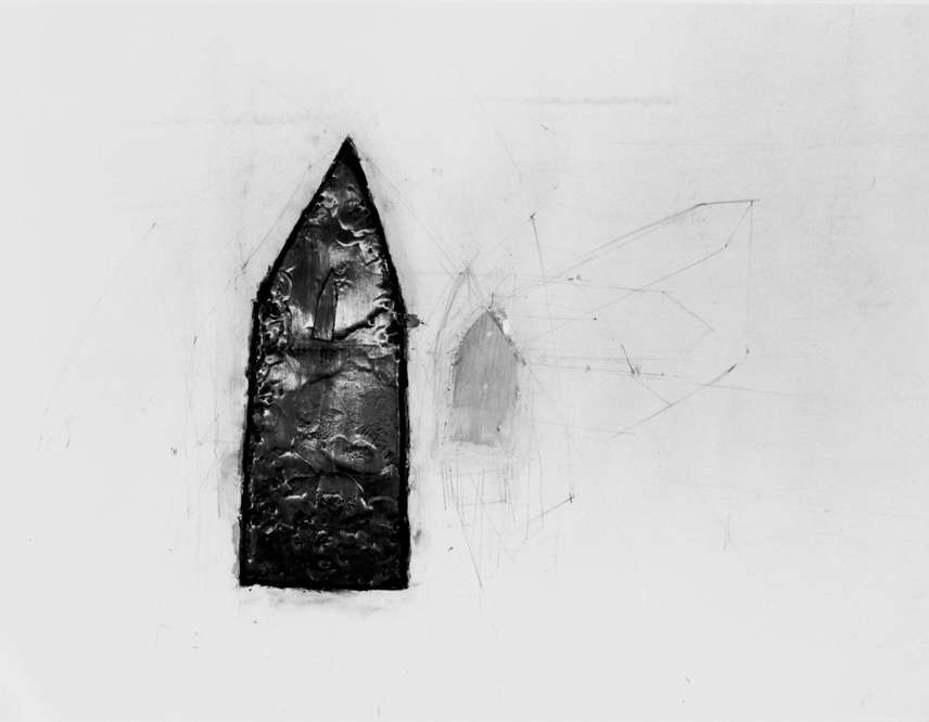 One of the pleasures of Ed Zelenak’s decades-long practice is its resistance to easy narrative. And yet, as John Bentley Mays wrote in 2015, “we know what his art is about.” Zelenak’s figures – oft-repeated and registering as personal iconography – become familiar, but never namable. Drafted, gridded or floating, and either gouged out or built up, his favored forms ring out the essential. You might vaguely identify a worked-over arrow, a divining rod, a rudimentary home of the type a child might draw, replete with a nimbus of erasure-lines. You might even trace the cosmos and infer an existential quest. But you’d be hard-pressed to tell of his work except to locate a feeling.