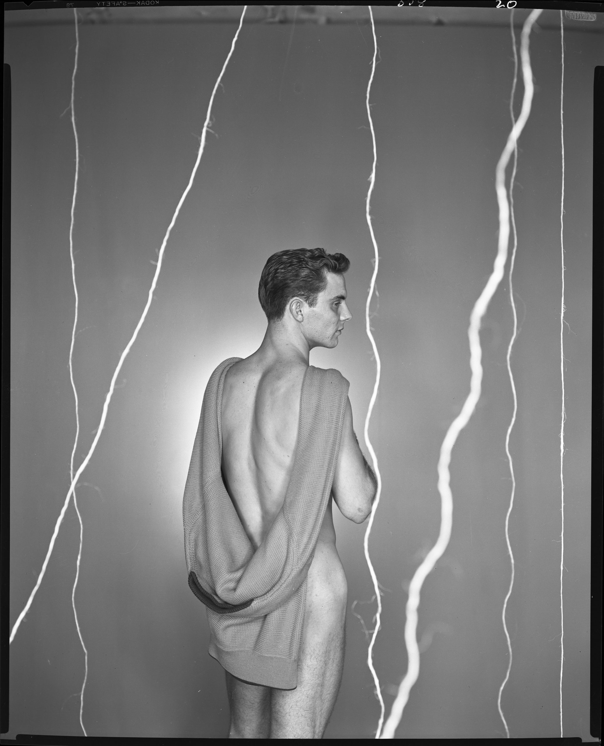The exhibition is interested in a period of gay desire that, in Mauss’s words, existed prior to “a public language around queerness.” The show declines to use people’s lives as proof or materials for whichever queer theory is on trend (“the posthuman,” “entanglement”); instead, Mauss shows gays enjoying the beach, desiring each other, and trying out new artistic techniques with understandably varying success. That Mauss chose to examine this history via performance makes sense, considering Butler and Sedgwick’s famous theories of the performative nature of social categories like gender and sexuality. In real time, dance can model ways of acting these roles differently: Mauss’s “male” dancers variously arch their wrists, giggle, lift each other; buff “female” dancers dangle themselves, en pointe, atop visibly ripped calves. Hyper-awareness of the dancers’ bodies feeds a similar sense of one’s own body: a body watching and watched by others, a multi-point feedback loop that modulates, amplifies, and distorts the ways we perform our genders and sexualities.