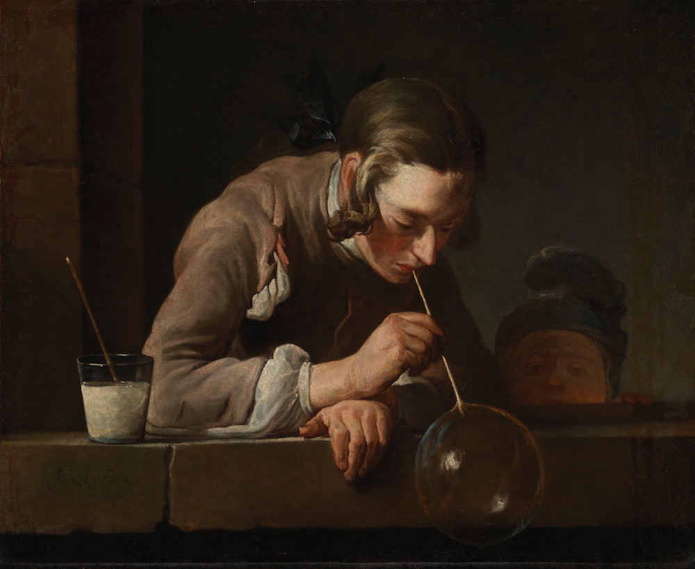 Not I: Throwing Voices (1500 BCE–2020 CE), a recent exhibition at LACMA, was in thrall to its ideas. Though ventriloquism was its central theme, curator José Luis Blondet’s vision went well beyond puppetry. Ten sections, each defined by that which it was not (“Not Double,” “Not Treachery,” etc.), gathered over 200 works – originating from all corners of the globe, and spanning three and a half millennia – under a breathless array of concepts associated with voice, sound, and objecthood. Among this motley assemblage, we might have marveled at the correspondence between the two- to three-thousand-year-old open-mouthed Colombian or Ecuadorian Gritón Figure Jar and five of Josefina Guilisasti’s similarly yawning bronzes, Resilientes/Resilients (2017). We may have savored the resonance between a late 15th-century Afghan bowl (inscribed in Persian with “My ear discerned a voice reverberating from the bowl”) and Robert Morris’s self-reflexive Box with the Sound of Its Own Making (1961), a wooden cube outfitted with audio of the sawing and hammering of its creation. I guffawed over a bubble-themed section that gave reason for Chardin’s Soap Bubbles (after 1739) to be in the same room as Goya’s etching, Sopla (Blow) (1799), which commemorates a powerful fart.