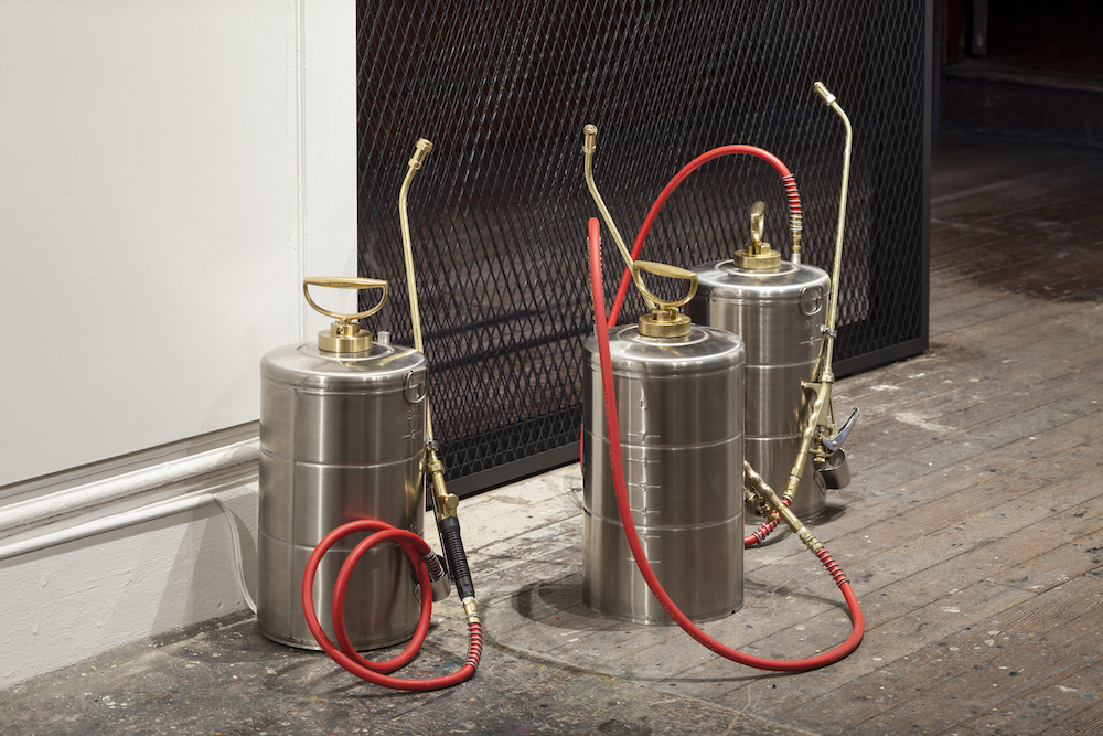 Other artists allowed us to reference recent and historical traumas caused by whiteness. Anicka Yi’s Immigrant Caucus (2017)—an installation composed of three small cans, the industrial-style metal ones that exterminators carry—silently sprayed a chemical compound into the air. Yi worked with a team of scientists at Columbia University to derive this compound and its aroma from the sweat of Asian American women and the emissions of carpenter ants. In the exhibition, the work seemed to eerily reference the spray cans used on migrants at the border.