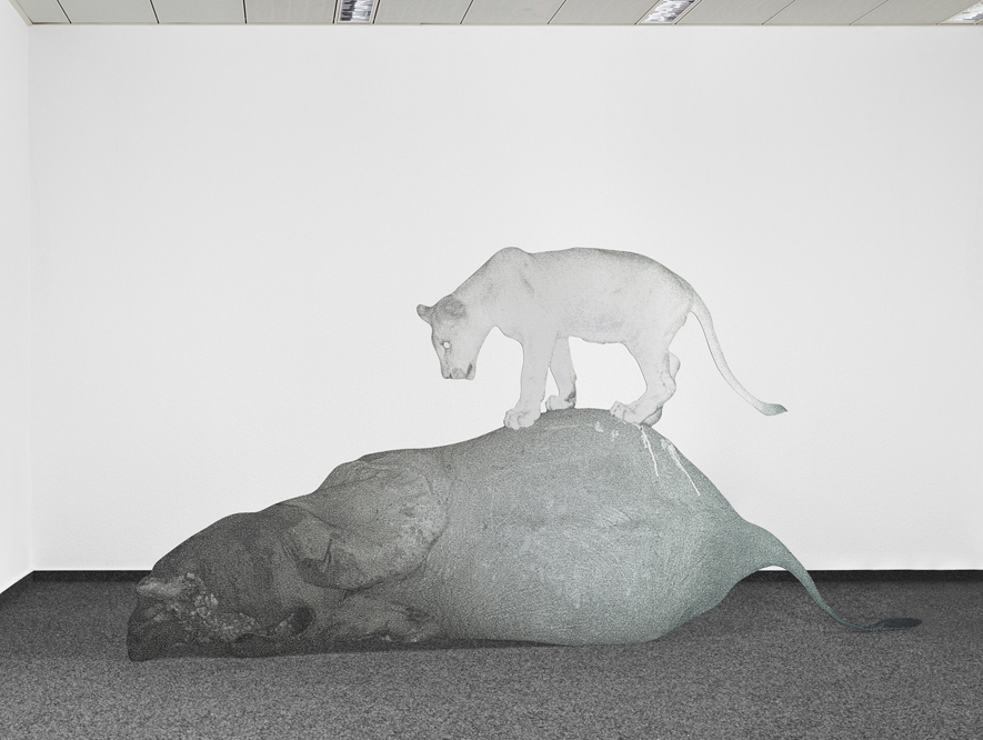 Since her 2011 publication Post-Internet Survival Guide, Novitskova has arguably been at the forefront of a generation of artists whose apogee was last year’s politically vapid and uber-contemporary Berlin Biennale. The appropriation of branding and readymade consumer objects renders this immediately recognizable, but the shuttered space of the Estonian pavilion allows Novitskova to display a maturity unusual among her peers. Recalling the world of Ridley Scott’s Blade Runner – paid an homage in the show’s title – the rooms feel increasingly sinister in their gloomy futurism. Yet unlike the movie’s rainy and dirty interiors, an uncanny comfort remains in the sheen and gloss of the humming machines, plastic spiders, and copy-and-paste aluminium figures of (often exotic or endangered) animals.