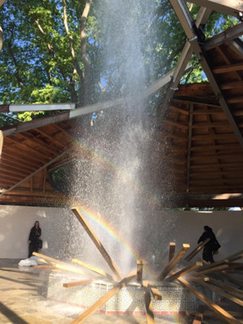 Farmer’s geyser found a claustrophobic counterpoint in Vajiko Chachkhiani’s Georgian Pavilion (he also has a video work in the Future Generation Art Prize). Here, the artist built an irrigation system into the roof of an old forest hut transported from Georgia into the sombre hall of the Arsenale. The house was closed off to the audience: only able to view it from the outside, they looked in through windows at an eternal downpour of misery. Chachkhiani’s is a relatable ruin in a homely apocalypse: one of our most ready-to-hand nightmares, the abandoned home on the outskirt of town, a timeless, organic dilapidation.