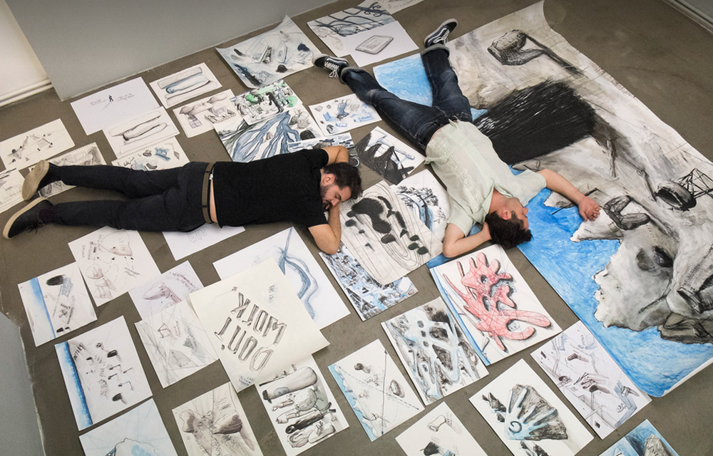 Down the street at the Galerie Ernst Hilger, nine artists and collectives jostled for space. As Ljubljana-based curator Alenka Gregorič declared that “the bed is the place where the private and public, rest and action, merge into one,” this presented itself as more of a “first world problem” (as the Twitter hashtag will have it), but strong works still stood out. One of these is Vuk Ćosić’s Hand Job/Written by Hand (2009), a hand-drawn version of the character-encoding system, ASCII, and a reference to the 1972 porn film, Deep Throat. Ćosić’s work suggests a relation between sexual acts that have been filmed for public consumption and traditional beaux-arts skills, albeit a mere representation of rudimentary computer imagery. And just as the genre of pornography shifts, in this representation, to that of conceptual art, so too the historical moment of the consumption of Deep Throat has shifted from former “grindhouses” (which went into decline as city centers emptied out in the 1960s and ‘70s) to, first with video and now online porn, the bedroom (or at least the couch).