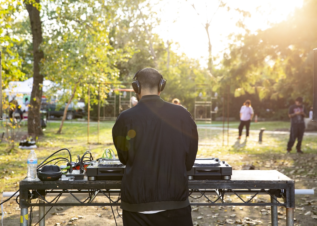 L: I discovered underground rave culture almost the same time as I came to sense my queerness, and it was an absolute “fuck you” to everything I wanted to say “fuck you” to. To this day, there is no place where I feel as at ease as at a grungy, chaotic party farthest from the center of all sorts. Rave has a huge influence on my generation, and I am very happy to see more thinkers, writers, and makers talking about it, writing about it, and making things about it. I have been making work about raving since 2019, but what interested me the most was how I could bring the principles and strategies of raving—inclusivity, openness, and ways of relating and making connections—into institutionalized art spaces. How can I crack or infect art-making with rave? This project at Socrates Park was particularly interesting and challenging because it brought the “underground” into a public space. I wanted to avoid romanticizing the industry of clubs and centering the project on one venue. That is why I had to clarify in the title that the work is “for my dancing peers.”