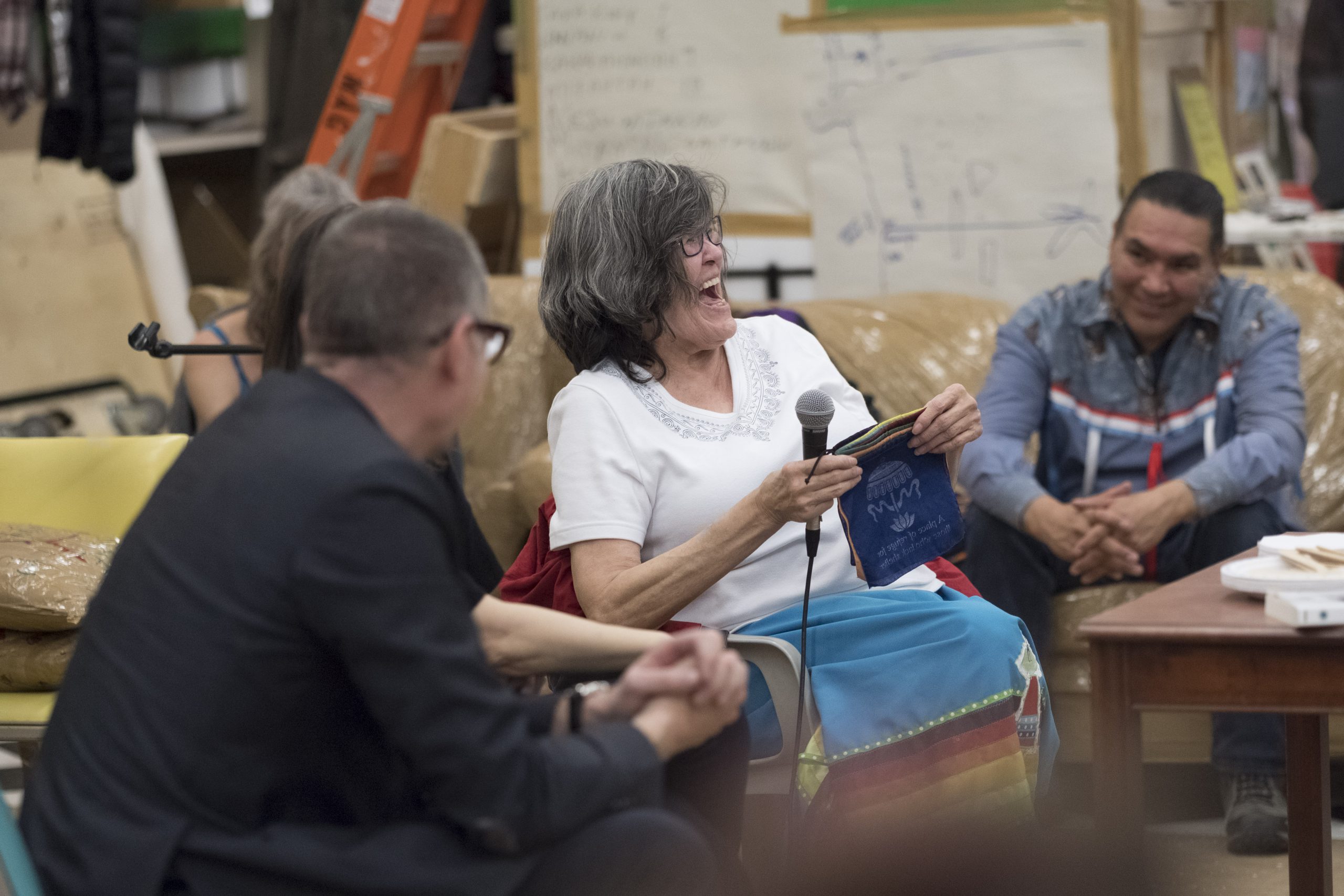 Johnson and Arnade saw what they saw in the Bronx, but here’s what happened in Saskatoon. Despite Hirschhorn’s invitation being circulated openly, Indigenous speakers largely defined the curriculum. For the unjustly brief period of one month, disempowered people took part in creating a platform not governed by institution or authority. The release-valve of social culpability for the crimes of poverty and racial segregation that such temporary projects offer isn’t without problems. But it’s necessary to join this critique with the fact of these participants having access to a regular and responsive audience in a colonial environment destructive of such positive opportunities. Consistently, these listeners were comprised not only of Hirschhorn and white gallery visitors, but many Indigenous people – both leaders in the community, and those oppressed by the racist distribution of poverty. Unflaggingly, the artist sat and prepared questions for the speakers. In many cases he knew their names and details of their lives outside the gallery. In addition to an opportunity to be heard, the more imperiled participants also had a safe, warm, energized place stocked with snacks and coffee. The barren difficulty of inner-city life in winter Saskatchewan shouldn’t be forgotten here. And the fact that this paltry offering seemed substantial precisely highlights the absence of care that Hirschhorn’s project filled.