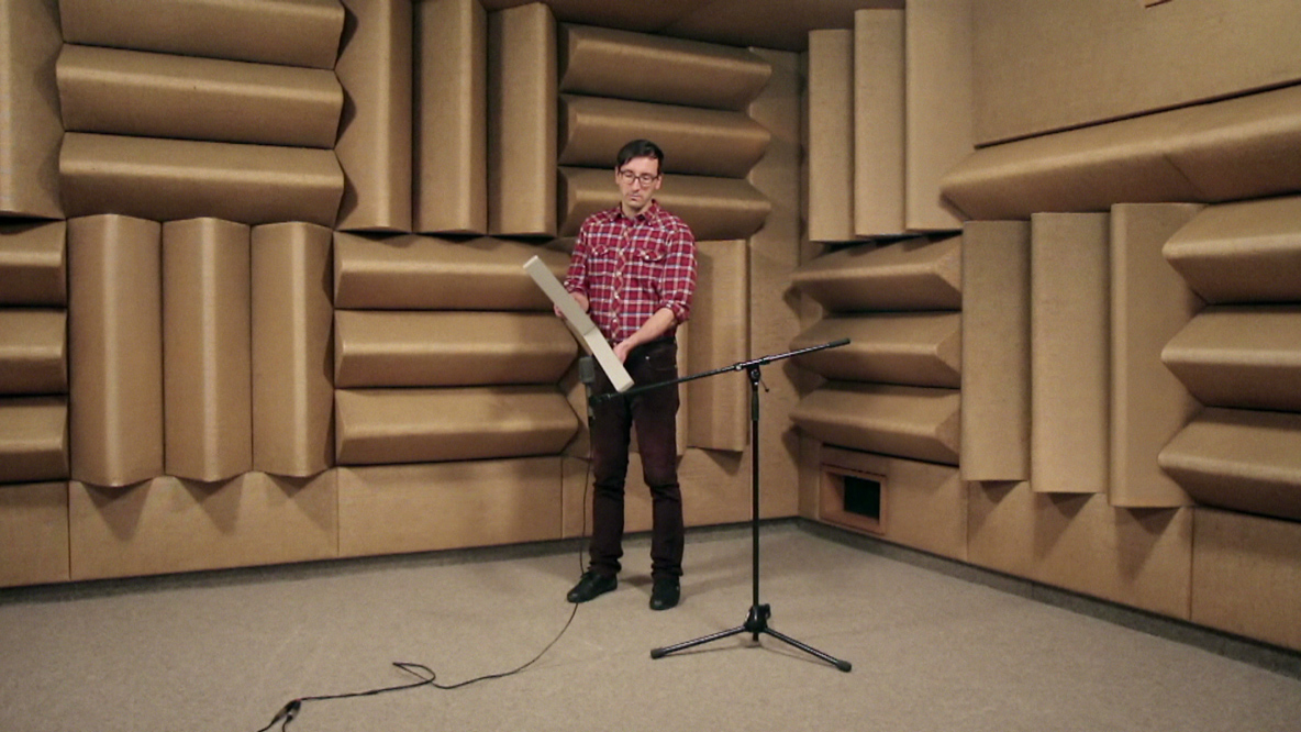These may seem like insignificant administrative details – distractions from reading the actual exhibition. On the contrary, I have found that looking closely at what came after an artist or work was selected can quickly reveal how and why decisions critical to the artist and work were made. Unlike a professional framer whose entire visit to a gallery could be spoiled by spotting an overcut passe-partout, or the way an AV technician may experience the quality of a projection as directly linked to that of the projector, looking closely at what is going on around the works in What People Do for Money greatly improved my ability to understand some of its more baffling curatorial decisions. Consider again, for instance, the first floor of the Löwenbräukunst, which upon my visit contained the work of three artists: The aforementioned Zürich Load by Mike Bouchet, inflatables by Bhakti Baxter, and video works by Roman Štětina. Unfortunately, the overwhelming smell of human waste made it terribly difficult to give the latter two works more than a moment’s attention. This was a particular shame in the case of Štětina’s videos; precisely-composed meditations on the obsolescence of radio-play Foley artistry. Specifically, Studio No. 2 (Slapstick) (2013) is a 5-minute-long film that requires focus on the part of the viewer to parse the subtle aural differences between first- and second-generation audio after-effects. Needless to say, focusing my senses – aural or otherwise – was precisely the last thing I wanted to do while standing in such close proximity to eighty metric tons of shit.