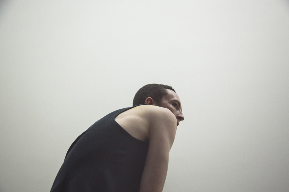 It’s in this holistic approach that Imhof seems to tackle the real roots of contemporary angst, which complexly encompasses both the urgency born of concrete fears – of a Trump presidency, drone warfare, climate change – and the futility of widespread existential malaise. A tightrope bisects the smoke-filled hall, at intervals bearing the weight of a performer with a baseball bat or paddle-ball racket in hand for balance. Three white spiral staircases with precarious lookouts, and several white punching bags comprise the sole architectural elements of the space. Somehow, the more obvious markers of fear in the piece – heights, birds of prey, flying robots – are less effective in spreading anxiety than the pervasive tone of purposelessness. Branded elements like Coca Cola, Pepsi, and Gillette shaving cream are sad anchors to reality, coloring Imhof’s hazy nightmare with mundane commercial signifiers that make the scenes eminently relatable.