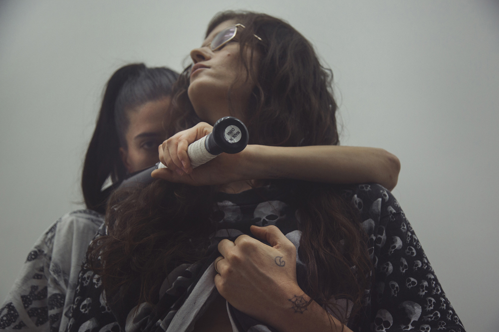 Angst II is staged as a series of anxiety-inducing images or tableaus, ranging from hovering drones as a metaphor for terror on a world-political scale, to double-edged shaving razors as potential weapons of self-mutilation. On the opening night, a live, hooded falcon perched forebodingly on the arm of a long-haired, skinny health goth. It feels a bit like you’ve entered a Berlin nightclub, with young people draped casually over armchairs, drinking cola light or smoking cigarettes. A rush in the crowd will signal action in a certain corner of the room, possibly unseen through the thick fog, and the audience is carried to and fro like a flock of sheep.