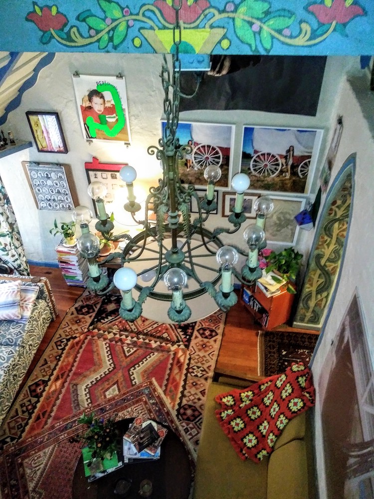 Four men came to our house because they were interested in architecture. They knew someone who knew our landlord, which is how they got our phone numbers. We welcomed them, hoping they might know something about this place where we live, conceived by a muralist who never built anything other than the five buildings in our courtyard and who kept scant records of his work. They knew much less than we do, it turned out. One man wore a heavy flannel jacket over jeans but the other three were dressed like they’d just come from well-appointed Westside offices. They stepped into our living room, uttering “ooohs” and “ahhhs” as they looked up at the room’s pitched ceiling and the faded seahorses, birds, and flowers painted on the rafters. One man told me he liked my style. “Bohemian chic,” he said, gesturing at the furniture around him. “I don’t have any other way to describe it.” He meant this as a compliment but it sounded to me like he was calling me an artsy eccentric, when I had been trying so hard to make pleasurable, intuitive rooms that echoed the house’s unconventional contours. Their awkward presence in our living room reminded me that, despite all the care and affection we put into this place, we are tenants; it is not fully ours.