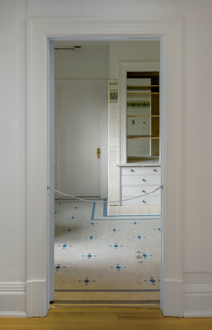 He writes: “It’s a way of turning over again the one and the many, I guess, that problem that always plays out in poetry, in all art probably, of wanting to be faithful to the concrete, particular thing, which is where the love in art comes from, I think, what I care about most, devotion to the actual.” And this made me think of you. Your devotion to the actual creates a kind of incandescence around it, where the instability of there being one gets brought into play. You are maybe benefiting from the aura of the objects and collections you work with too. Denying Walter Benjamin his conceit that photography gets deprived of that aura. Does that resonate with you? Also, almost as an image-accompaniment to this question—I really loved what you did with the bathroom in The Fireplace. Can you describe how that gesture came into being, within the larger scope of these considerations around the “actual” and the aura of the inherited object?