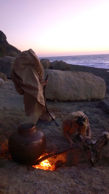 A week later at the monastery, the number of Elsewhere & Otherwise attendees had nearly doubled from the year before. The group dynamic became even more of a focus than it was the previous year. How do 100 people communicate together? How does a group this big ensure that certain personalities do not dominate? Corazon and Valentina cooked the world again, this time inviting anyone to take a turn wearing the cape: spinning and stirring. At the beach, the ritual had been more of a quiet exorcism. Here it felt more like an elective initiation – by putting on the cape, you were, at least for a moment, accepting the proposition that Corazon and Valentina had set forth: that we were all dominated by something, and that participating in a ceremony like this could help us begin to understand it. The images of the world turned to pulp, and after it was done, we burned the cape in a fire.