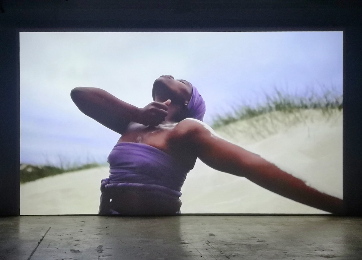 For instance, in Buhlebezwe Siwani’s captivating video commission for the introductory gallery, four performers crawl, tread, and dance in different natural environments—attentively touching and spreading sand, water, stone, and earth on their bodies. The wall text explains that the natural elements reference the artist’s practice as a healer using ancestral rituals informed by Christianity and “African spirituality,” while leaving the content of these belief systems troublingly unexplained, as though the invocation of Africa, nature, and spirits is in itself straightforward and unremarkable.