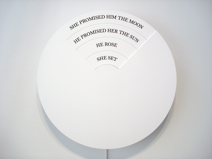 Cerebrally I agree with Jonathan. When I work with language the words are both temporal and fixed – they exist through movement that is time-based but they exist within a closed loop. We could see the closed loop as finite if that is where the work stopped but it doesn’t because the production of meaning is passed on to and through the viewer.